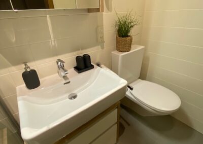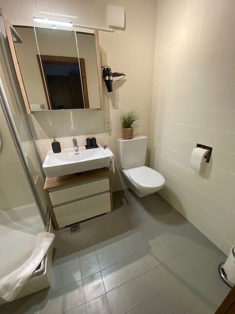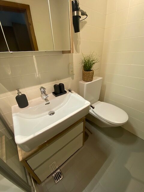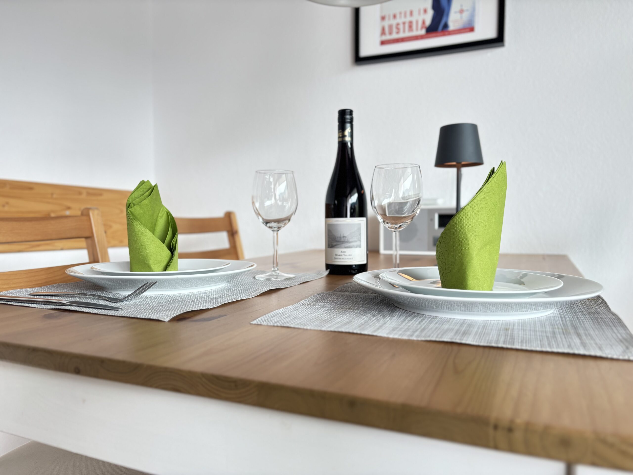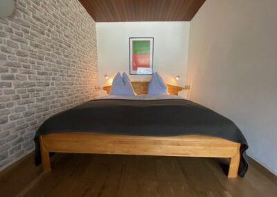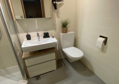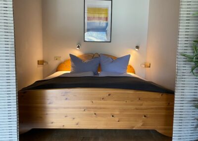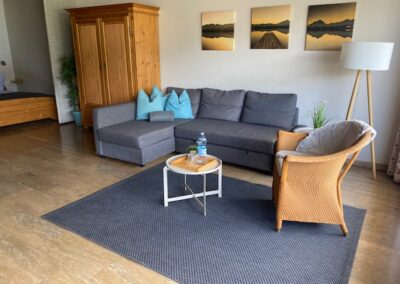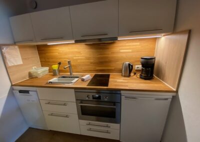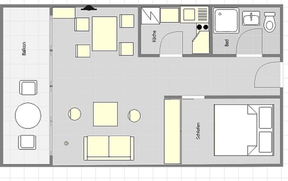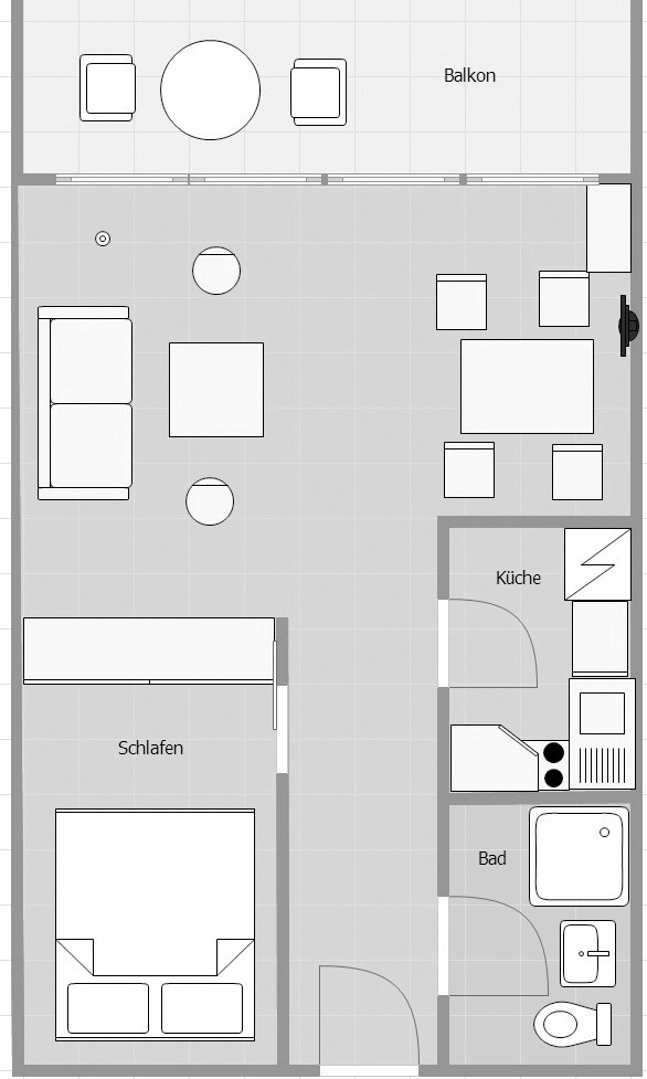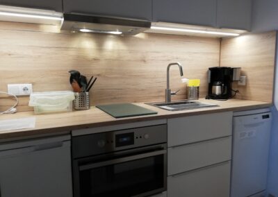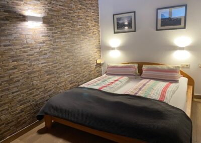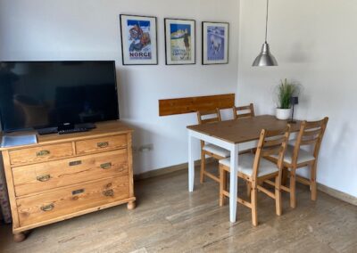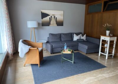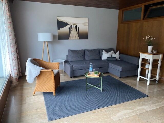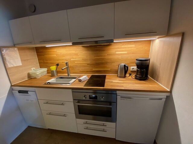 Die 45 qm2 große Wohnung besteht aus Wohn-/Schlafbereich (Doppelbett), Küche, Bad und Flur. Fußbodenheizung und große, bis zum Boden reichende Fenster sorgen für das richtige „Wohlgefühl“.